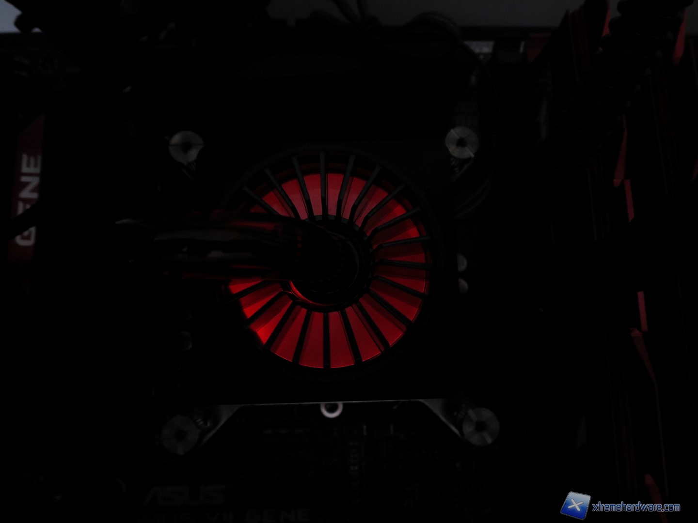 Dettaglio del LED rosso illuminato di notte con effetto ‘’Breathing’’ quando avremo il PC e l’AIO in funzione.