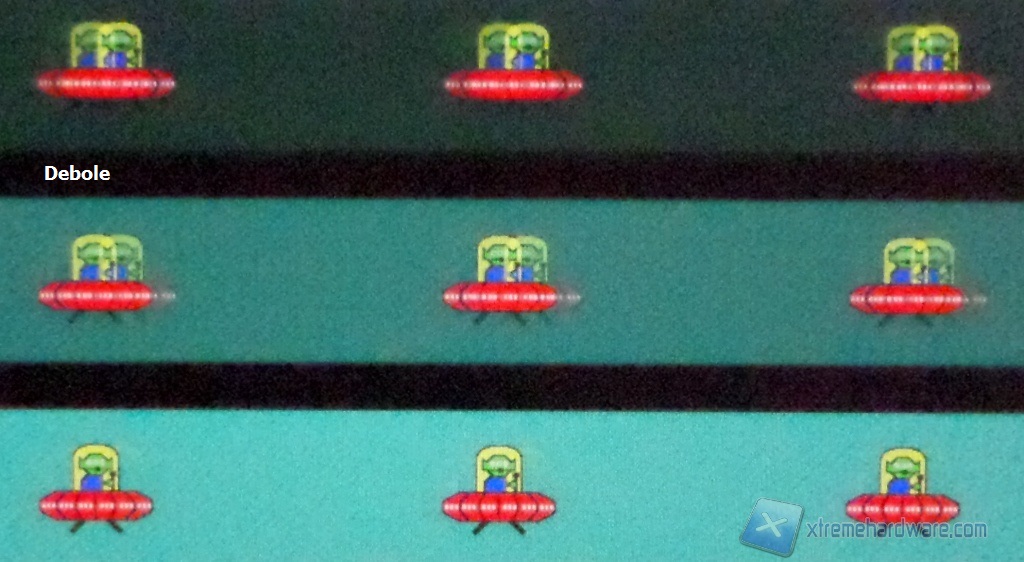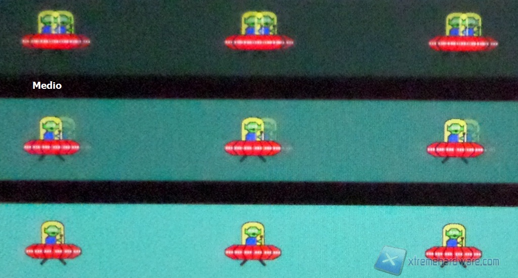 Il setting di default, Medio, è quello che offre le migliori prestazioni. Il valore più spinto genera un po' di overshoot di segnale e manifesta il reverse ghost. Gli altri hanno una reattività inferiore e l'effetto ghost è più pronunciato.