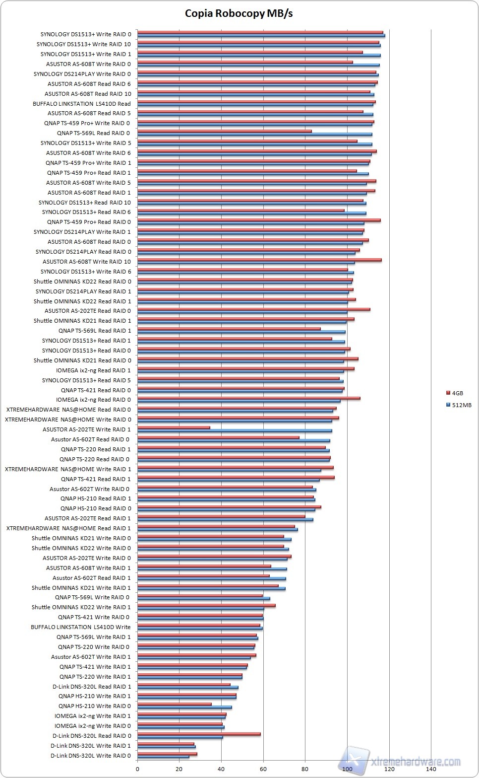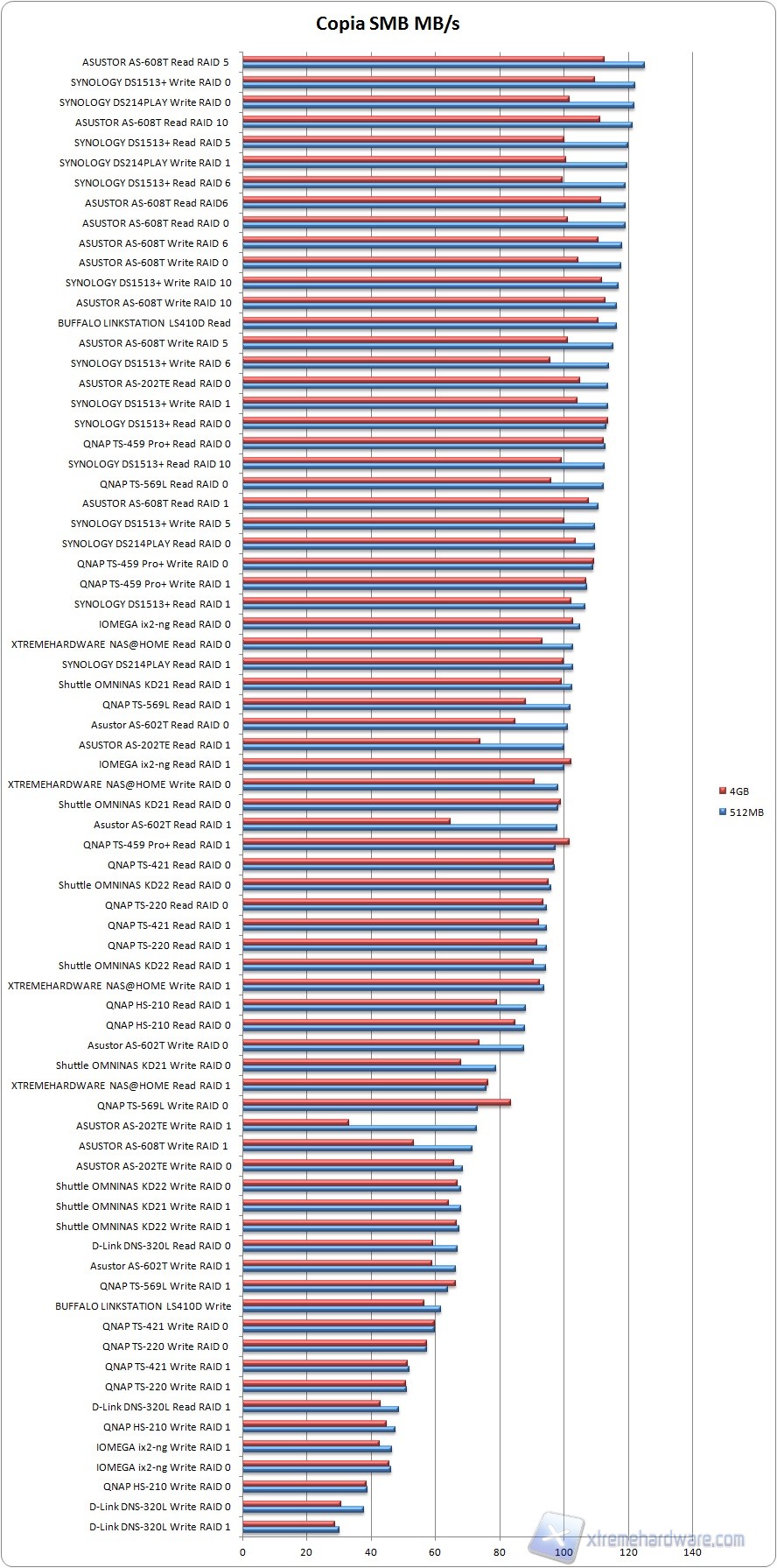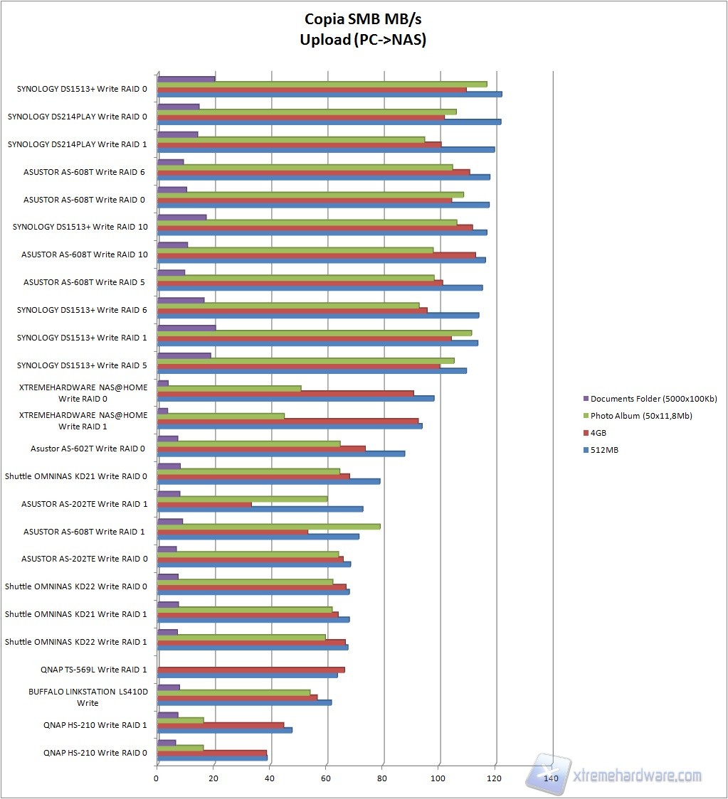 Il prodotto costruito da noi si posiziona immediatamente sotto alle soluzioni aziendali di Synology e Asustor, facendo registrare un picco di 96 MB/s nello spostamento di un file da 4GB.