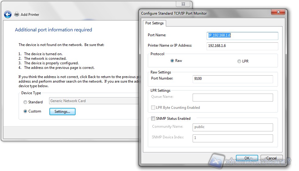 In tipo del dispositivo, selezioniamo Dispositivo TCP/IP, sotto inseriamo l'IP del SilverStone e in “nome porta” possiamo mettere IP_indirizzoIP. Windows ricercherà il dispositivo.