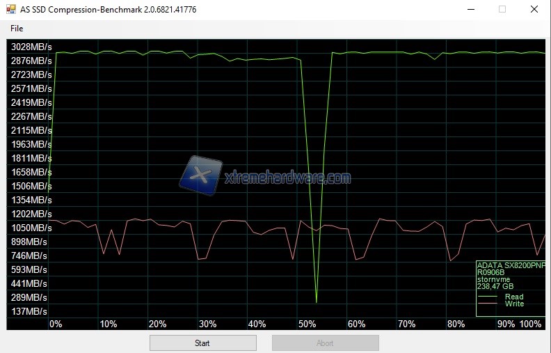 A seguire i grafici con i valori ottenuti dall’ADATA XPG SX8200 Pro da 256GB: